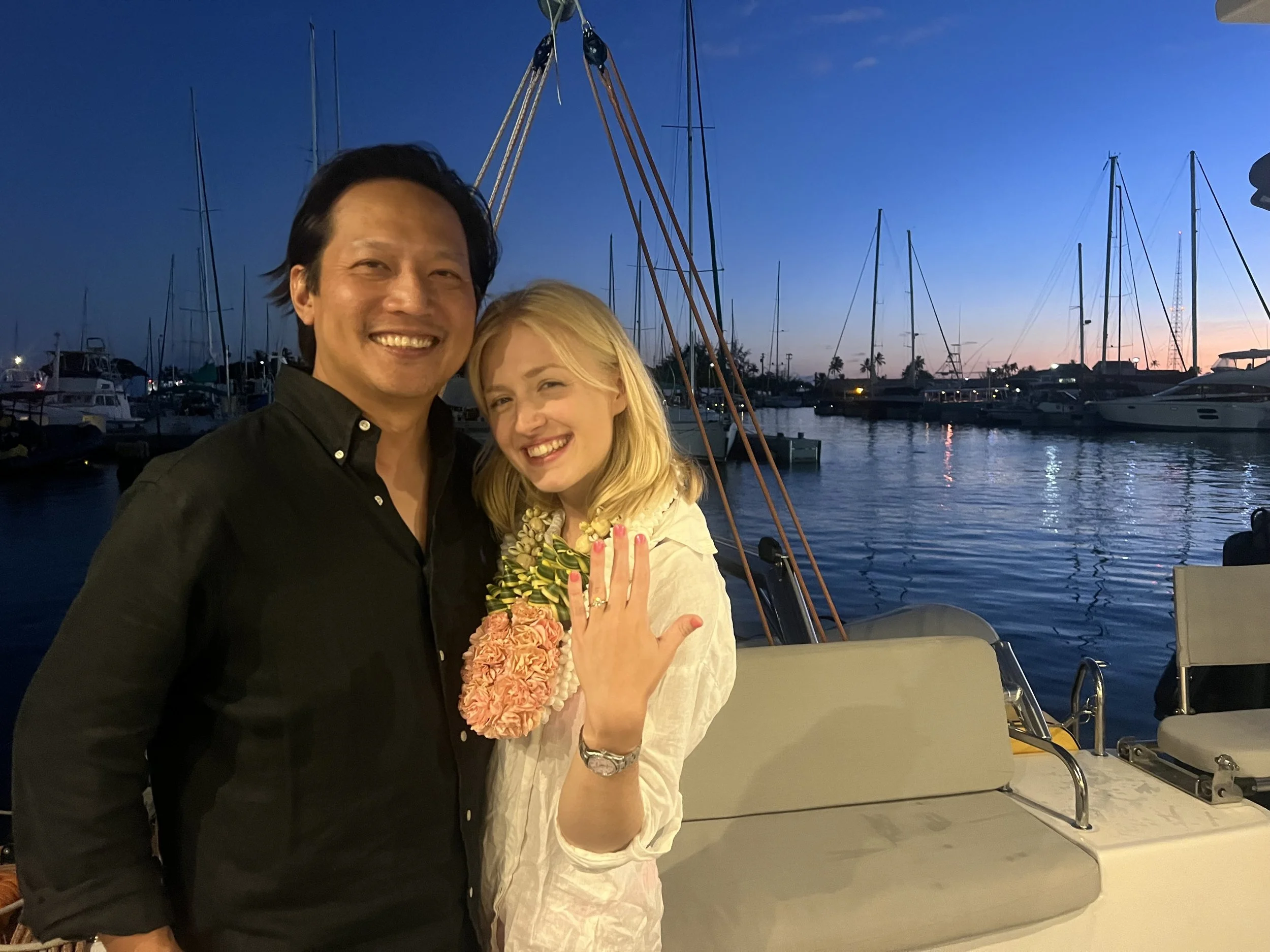 Wellington and Safiya met each other online at the end of the first year of the pandemic. In 2020 fashion, their first date was outdoors, at a ramen restaurant in Shaw. They quickly became inseparable over the next year. Safiya picked up Wellington’s hobbies of rock climbing and skiing, and found both to be so much fun. They lived in D.C. while adventuring around the U.S., until they decided to start a life together in Honolulu in the summer of 2024.